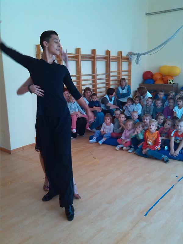 A nagy sikerű mezőtúri bemutatók után, a gyomai óvodákban és iskolákban is népszerűsítettük egyesületünket. Czibulka Alex - Hajdú Andrea párosunkkal jártunk végig három óvodát és egy iskolát: a Kossuth úti, Jókai úti és Vásártéri ovikat és a Kis Bálint Általános iskolát. Elsöprő sikert aratott Alex és Andi, és több helyen a bemutatót követően rögtön kedvet kaptak a gyerekek a társastáncokra.